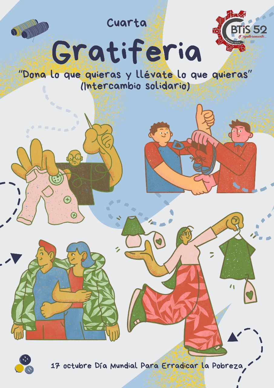 En paralelo, se desarrollará la "Grati Feria", una dinámica de intercambio libre de objetos en buen estado. Los estudiantes podrán llevar artículos que ya no utilicen como ropa, libros, accesorios, entre otros. y, de esta manera, colocarlos en un espacio común para que otros compañeros puedan llevar lo que necesiten. Esta actividad promueve el consumo responsable, la reutilización y la solidaridad, demostrando que no todo debe adquirirse mediante el consumo tradicional.