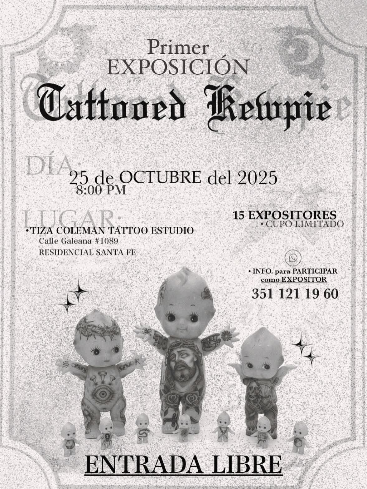 La muestra nace de una inspiración poco convencional: los Kewpies, muñecos de escala pequeña que, en esta ocasión, se convierten en lienzos para tatuajes diminutos. Cada uno de los 15 artistas invitados ha intervenido un muñeco con diseños personalizados que reflejan su estilo, técnica y sensibilidad. El resultado es una muestra íntima y meticulosa que permite apreciar el nivel de detalle que exige el buen tatuaje.