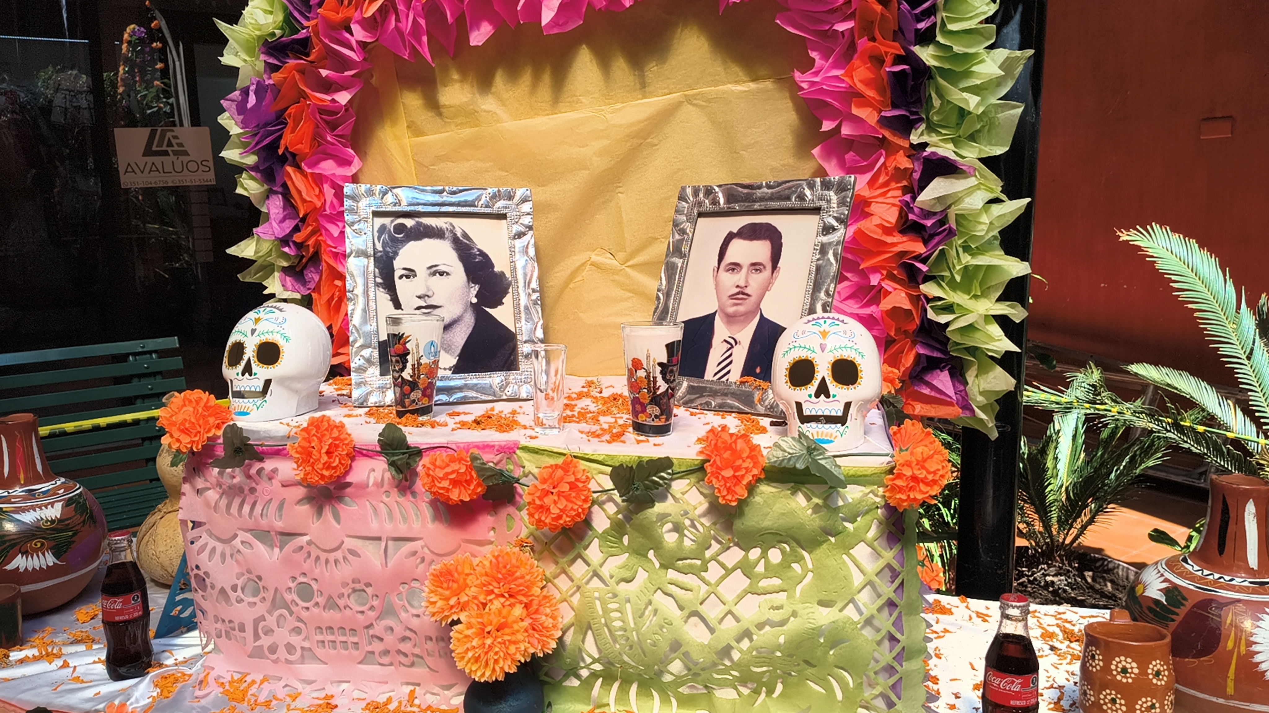 Los altares incorporan los elementos esenciales de esta tradición: fotografías, veladoras, papel picado, flores de cempasúchil, pan de muerto y objetos personales que evocan la presencia de quienes ya no están. Cada detalle está pensado para construir un espacio de encuentro entre generaciones, donde el recuerdo se vuelve acción cultural.