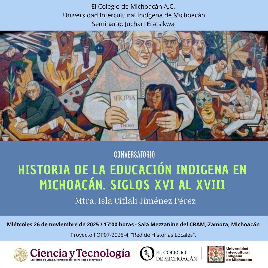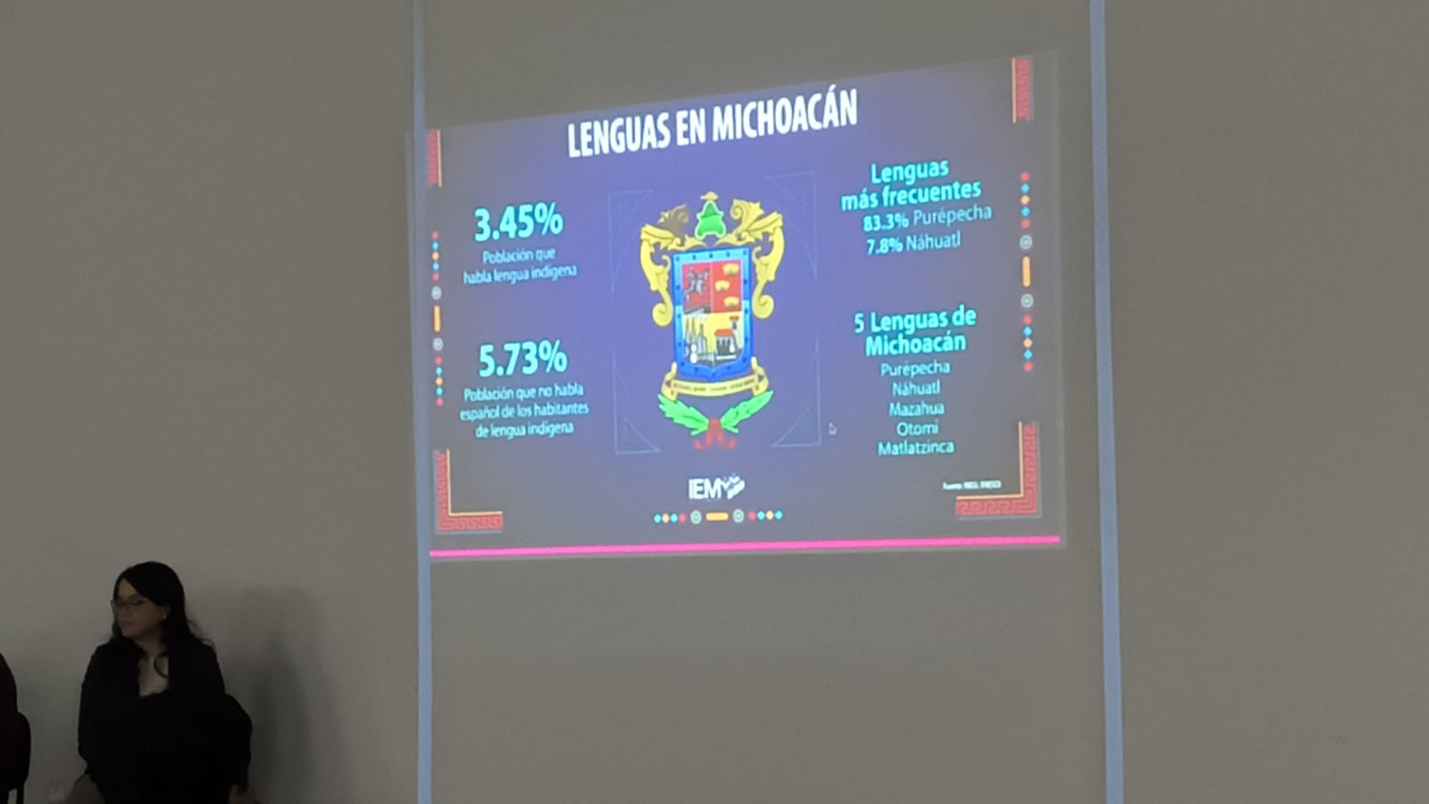 La conferencia estuvo a cargo de la maestra Citlalli Jiménez Pérez, quien durante una hora expuso cómo fueron educados los indígenas en Michoacán durante la época colonial. Explicó el proceso mediante el cual los frailes aprendieron el idioma purépecha para iniciar la evangelización, las jerarquías que se establecieron en las comunidades y el surgimiento de escuelas como parte de la estrategia colonial. Su intervención permitió reflexionar sobre las tensiones entre imposición cultural y resistencia, así como sobre la vigencia de la lengua purépecha en la actualidad.